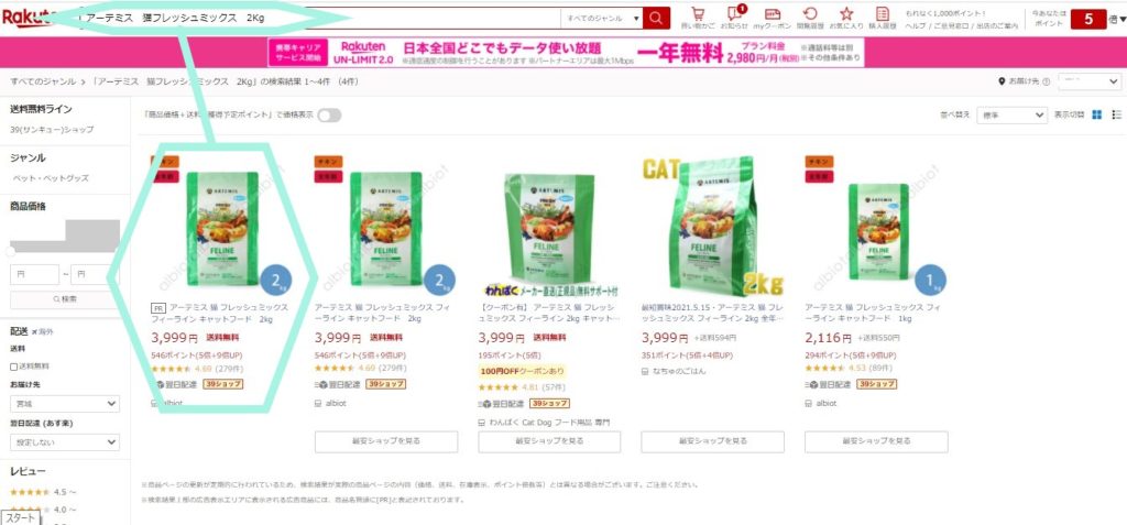 アーテミスキャットフードの購入価格※どこで買うかに落とし穴は?